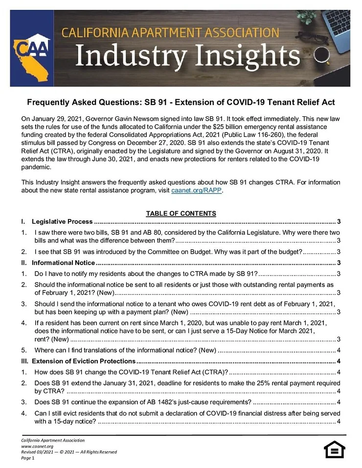 Get the latest news on Senate Bill 91 revolving around landlord and tenant rights. You would want to make sure you understand all the loopholes as a landlord pursuing to evict, and as a tenant you would want to understand your rights that are protected.